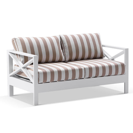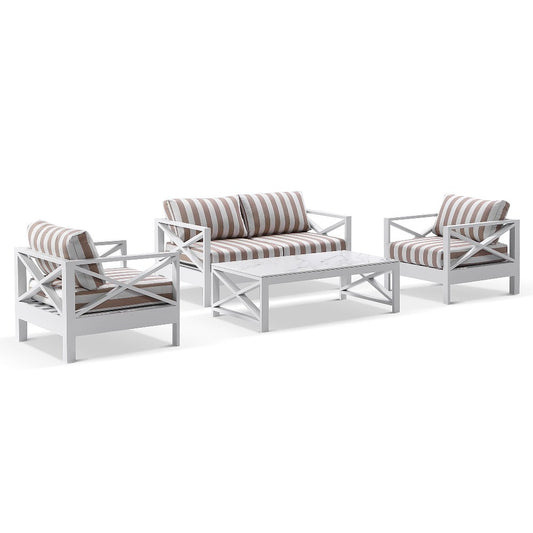 Airlie 2+1+1 seater Outdoor Aluminium Lounge Set with Coffee Table White/Sunbrella® Maxim Heather Beige