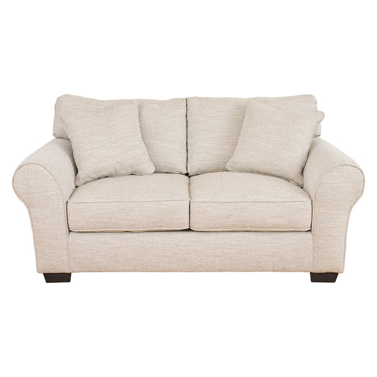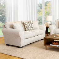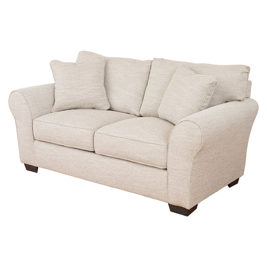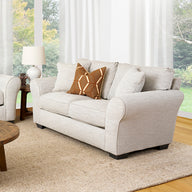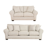Upholstered in a durable and supremely versatile 100% polyester beige fabric flecked with grey, this 2 seater sofa features reversible back and seat cushions for longevity.