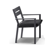 The table’s sculptural base is as strong as it is stylish, crafted from powder-coated aluminium to deliver long-lasting durability. Paired with the Kingscliff Chairs — which combine lightweight construction with sleek, modern lines and textured Olefin cushions — this setting is designed for comfort, versatility, and everyday ease.