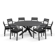 Bring effortless elegance to your outdoor space with the Beachport Dining Set, featuring a round 1800mm table and eight stackable Kingscliff Chairs. With its clean lines, dark tones, and subtle textures, this set offers a relaxed coastal feel that complements both contemporary and classic exteriors.