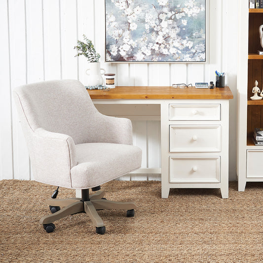 This office chair does everything you'd expect an office chair to do with gas lift, swivel seat and a sturdy poplar wood base on castors.