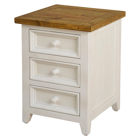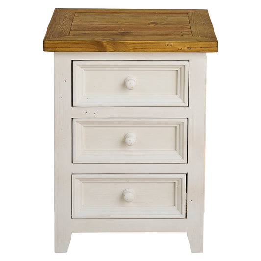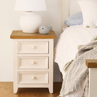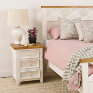 This bedside table features three drawers with a timber knobs and is perfectly matched with the Byron queen bed frame and Byron tallboy with 4 drawers.