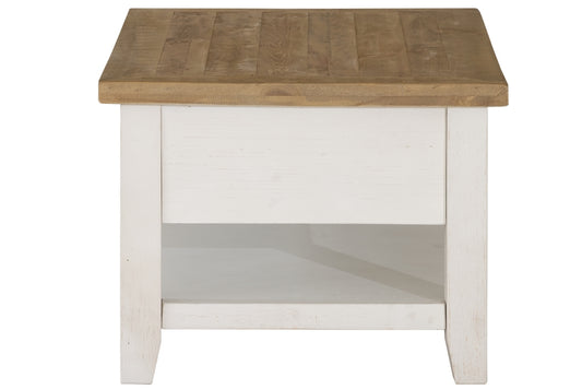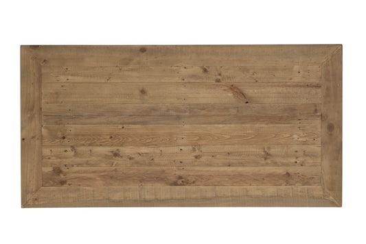 Made from solid, reclaimed pine, products in our Byron collection feature timber tops with a rustic tawny stain and ivory washed bases. The timber tops have been authentically aged to achieve a weathered, rustic appearance.