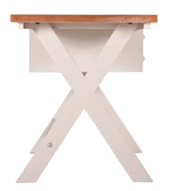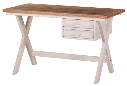 Made from solid, reclaimed pine, products in our Byron collection feature timber tops with a rustic tawny stain and ivory washed bases. The timber tops have been authentically aged to achieve a weathered, rustic appearance.