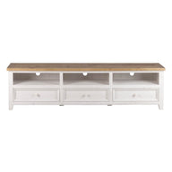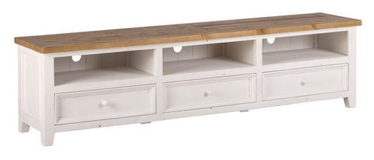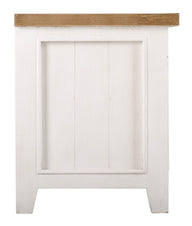 Made from solid, reclaimed pine, products in our Byron collection feature timber tops with a rustic tawny stain and ivory washed bases. The timber tops have been authentically aged to achieve a weathered, rustic appearance.