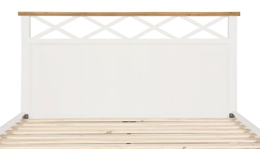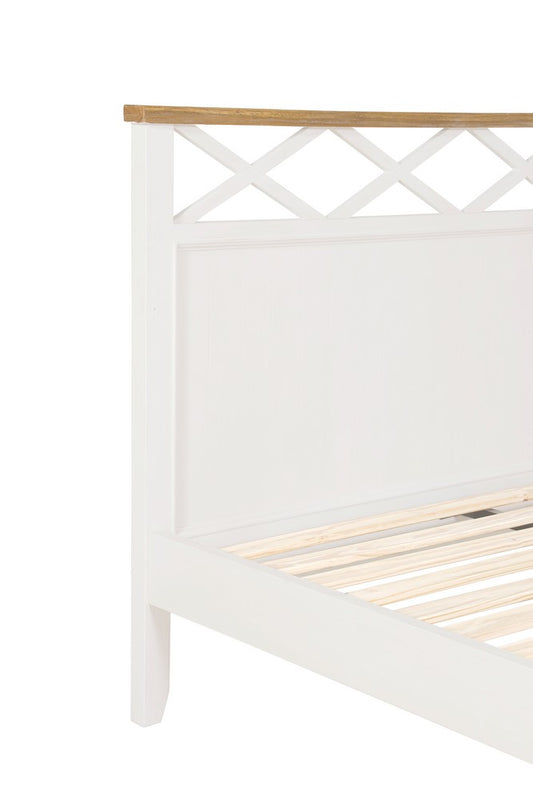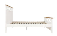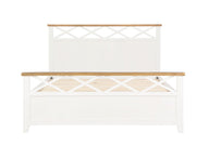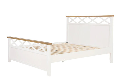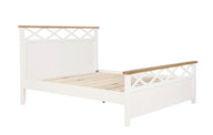 This timeless queen bed frame features a cross design on the headboard and foot.
