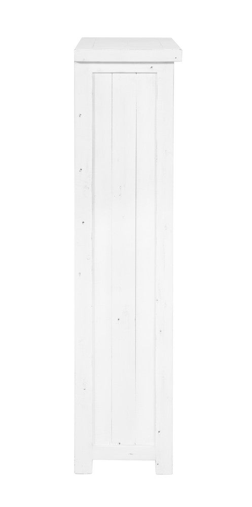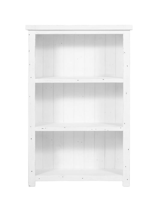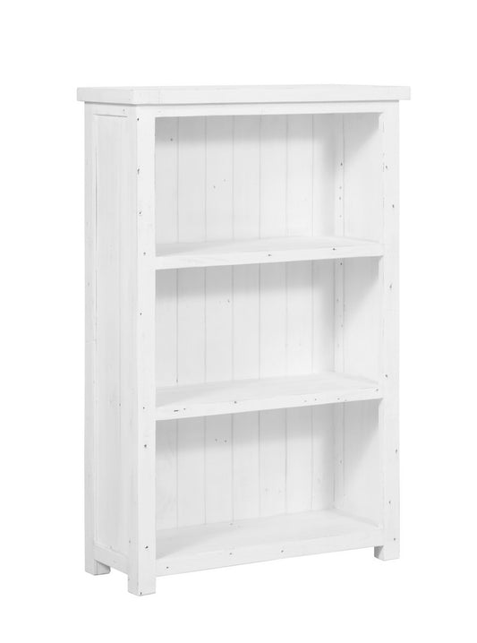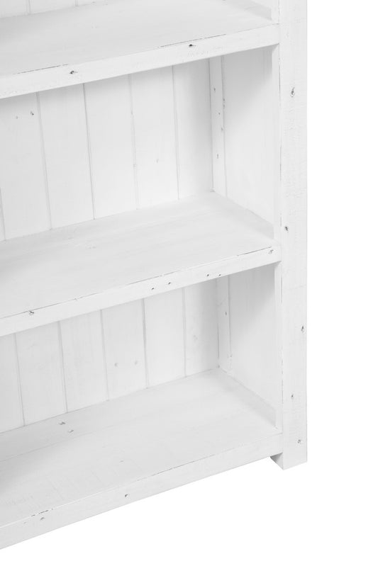 Crafted from reclaimed pine shipping pallets with an ivory painted finish, the Charleston bookcase embodies the fresh, beachy vibes of Hamptons style furniture. Its visible knots and nail holes evoke the character and patina of old wood.