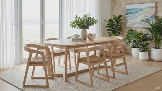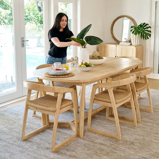 Expertly crafted from premium rubberwood in a natural finish, this 6 seater Scandi-style dining table features sleek lines and minimalist details, ensuring that it will complement almost any interior style.