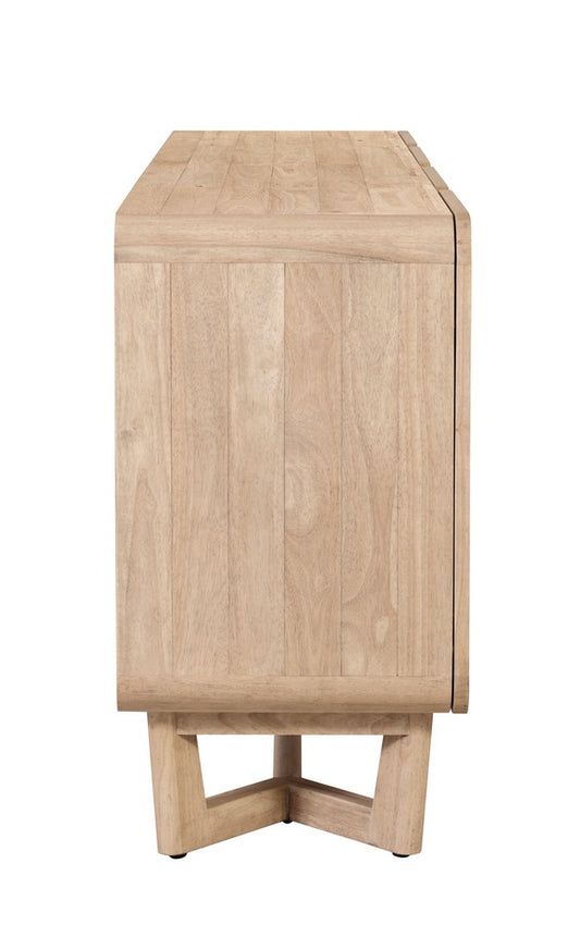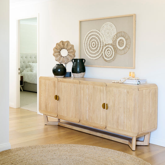 Expertly crafted from premium rubberwood in a natural finish with half moon handles, this Scandi-style large sideboard features sleek lines and minimalist details, ensuring that it will complement almost any interior style.