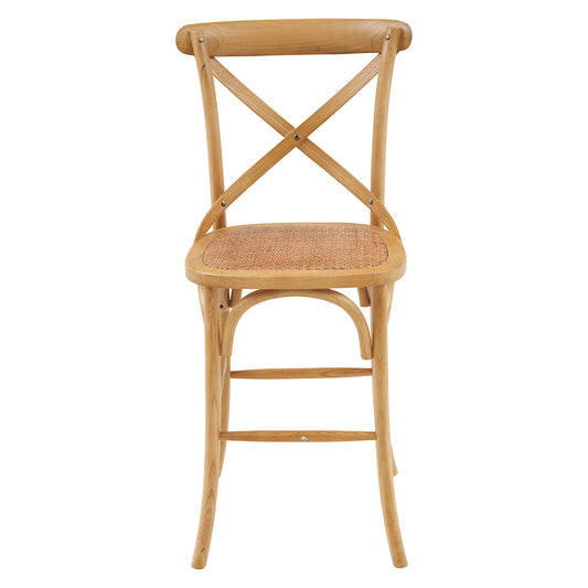 Made from elm wood and finished especially for 1825 interiors, this French Cross breakfast stool features a natural finish with a comfortable rattan seat and is a perfect match with our French Cross dining chair. This breakfast stool also works beautifully with country style and French provincial furniture.