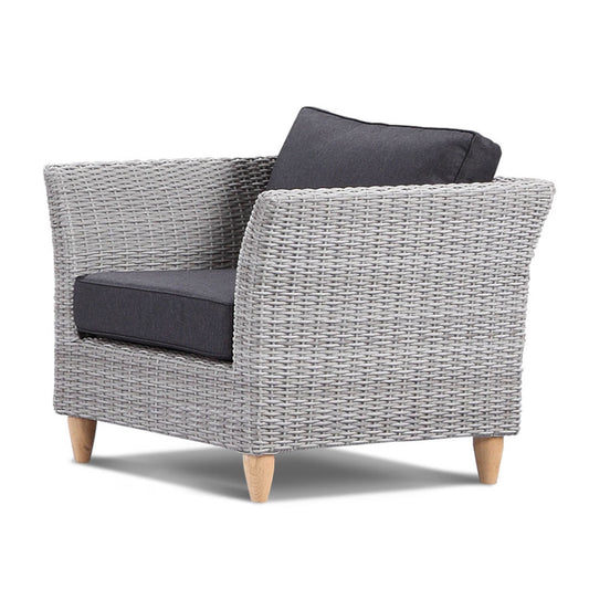 Glenelg 3+1+1 Seater Outdoor Wicker Lounge Set with Coffee Table Brushed Grey/Denim Grey