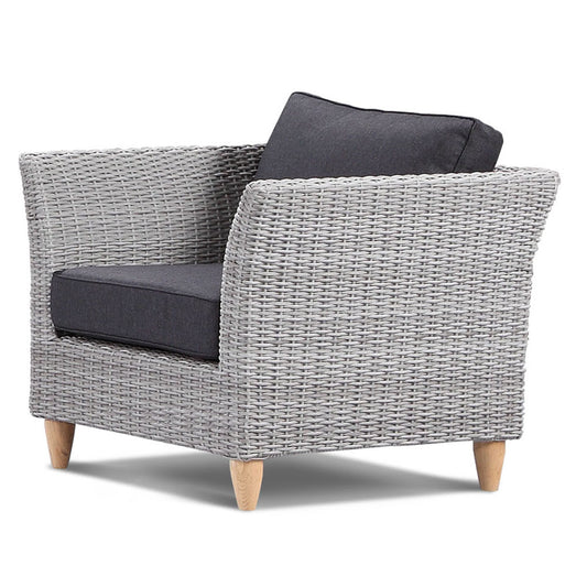 Its powder-coated aluminium frame ensures strength, rust resistance, and stability, making it a practical choice for the Australian climate. Whether styled on its own or paired with other pieces from the Glenelg collection, this armchair delivers a welcoming blend of comfort and sophistication to your outdoor space.