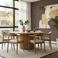 Crafted from durable rubberwood and plywood in a natural colour, it comfortably seats up to six, making it perfect for gatherings.