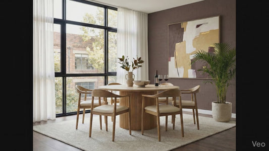 Its smooth table top offers a refined finish, beautifully balanced by the subtle fluted detailing on the pedestal base, adding texture and charm. A timeless addition to any dining space.