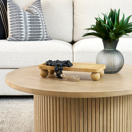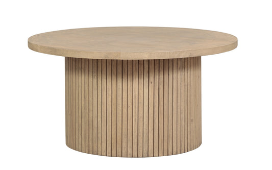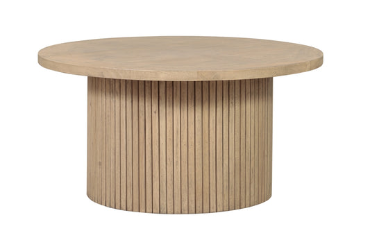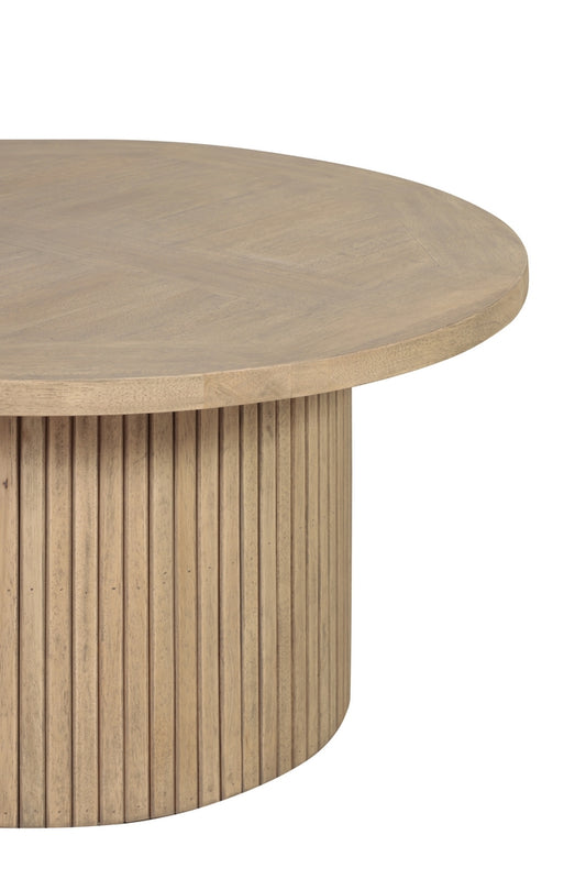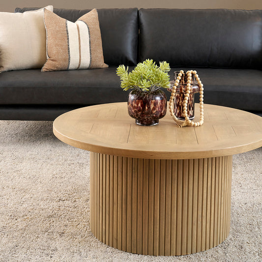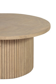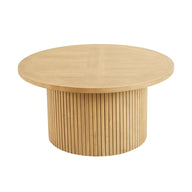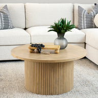 Its smooth table top offers a refined finish, beautifully balanced by the subtle fluted detailing on the pedestal base, adding texture and charm.
