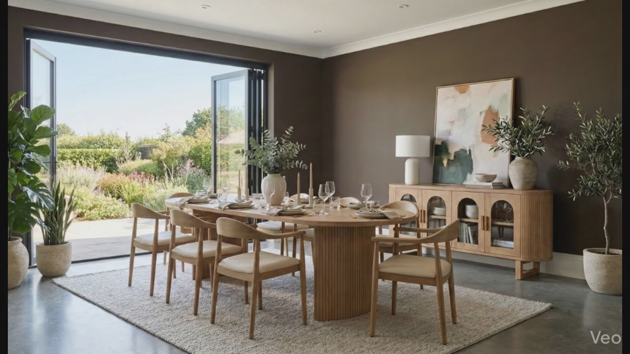 Designed with both form and function in mind, the Lux sideboard offers generous storage space behind its arched glass doors—perfect for displaying curated tableware, glassware, or decorative pieces. With its timeless character and standout silhouette, it brings a refined edge to any dining or living space.