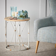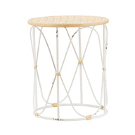 The understated design of this side table avoids clunkiness and clutter, while the rustic loop base and detailing of the white frame adds an artsy flourish to any space.