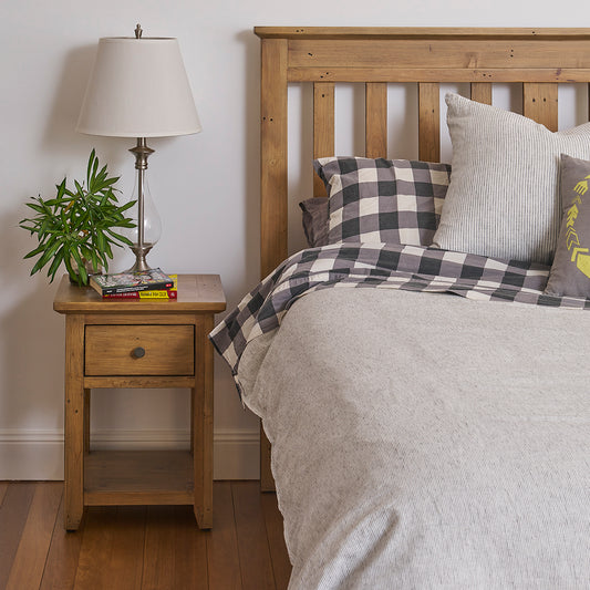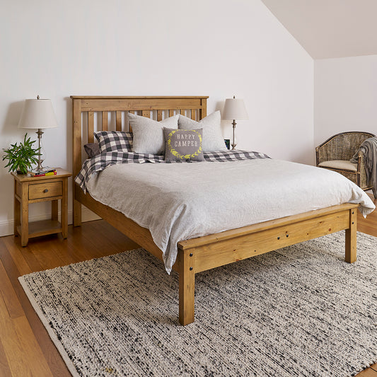 Pair the Murray River queen bed frame with the matching bedside table and tallboy.