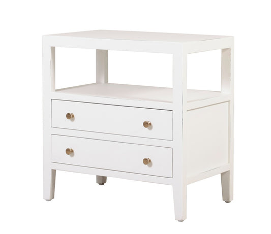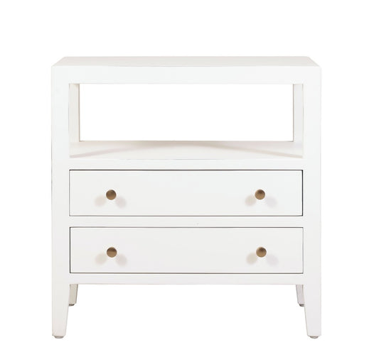 Featuring a sleek, spacious table top, open shelf and two large drawers, it provides ample storage for all your night time essentials.