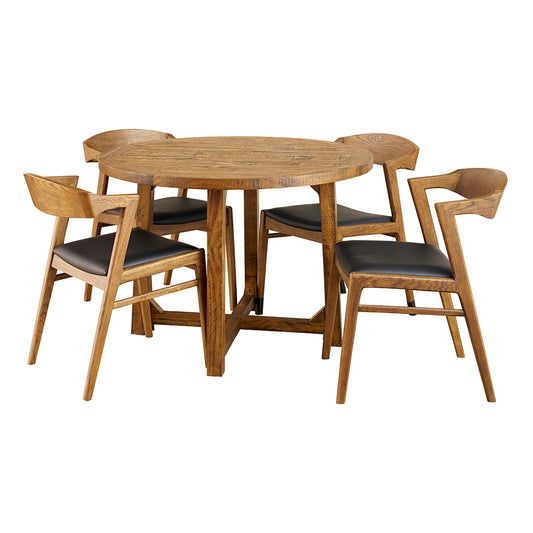 Round dining table with 4 dining chairs.