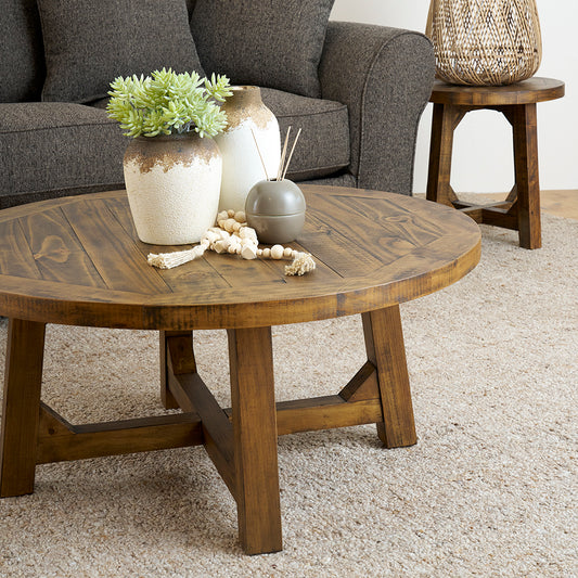 With its strong lines and unmistakably handmade feel, the mid century style Oslo round coffee and side table set is a nod to the past, while at the same time maintaining a relevance to today's world.