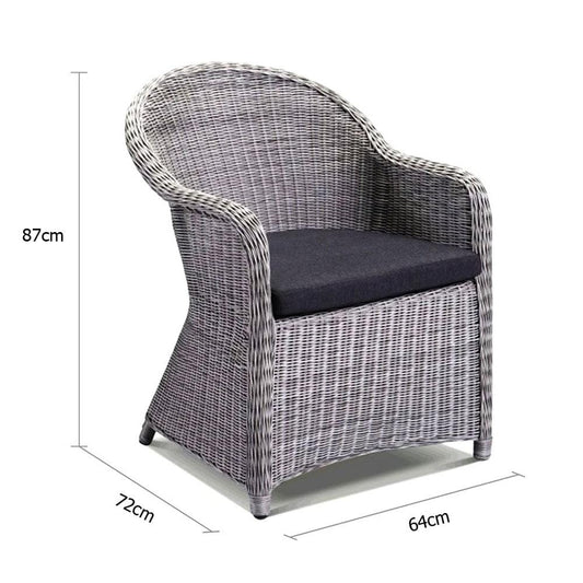Portsea Full Round Wicker Dining Arm Chair Brushed Grey/Denim Grey