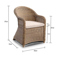 Portsea Full Round Wicker Dining Arm Chair Brushed Wheat/Cream