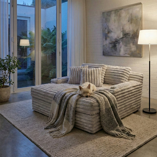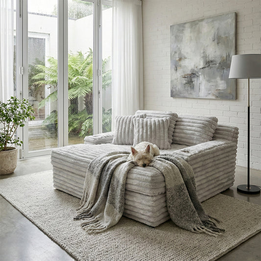 Large corduroy plush feel upholstery with 2 matching scatter cushions.