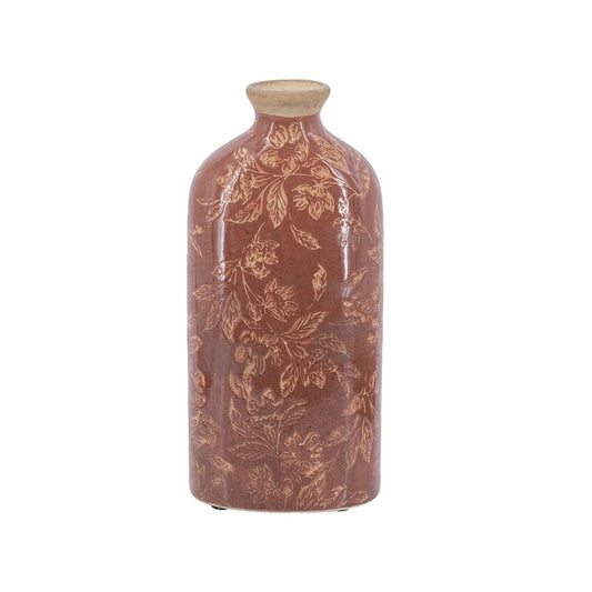 Red Ceramic Vase with Floral Motif Small