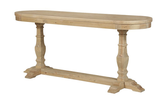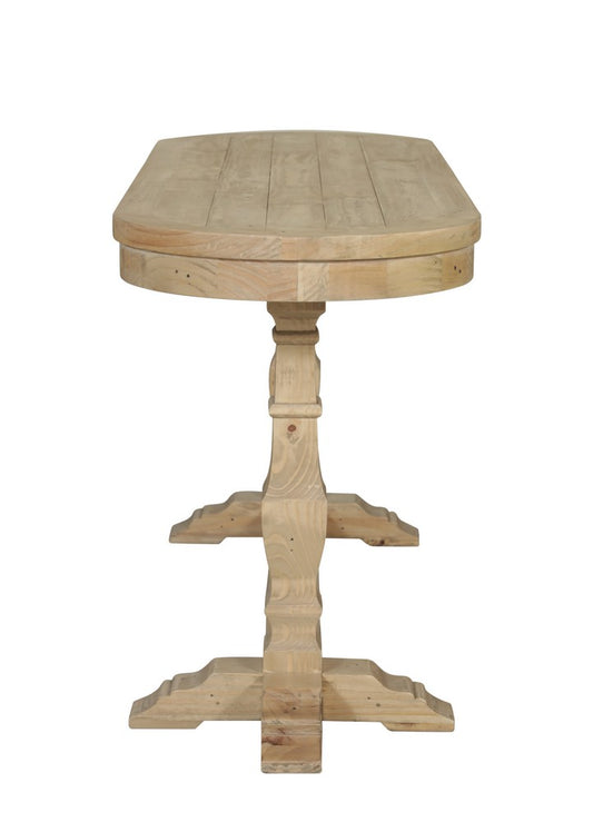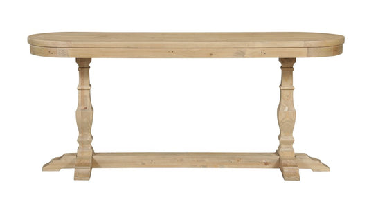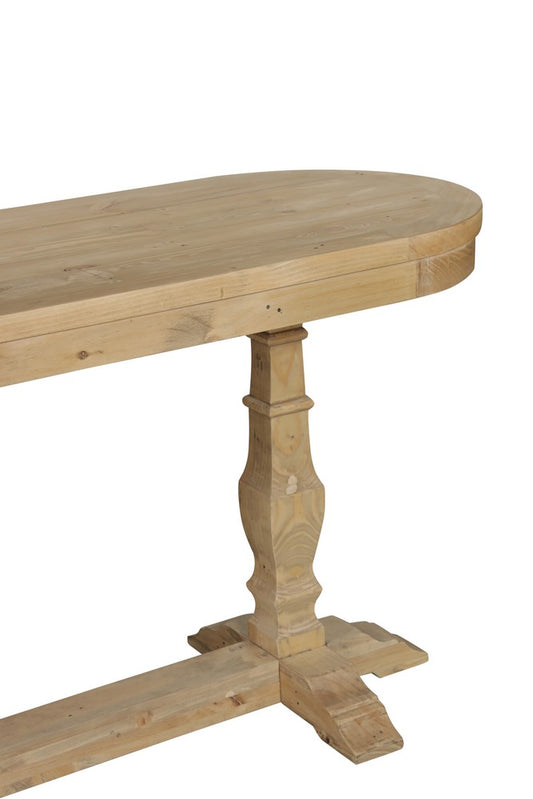 Made from reclaimed pine with a natural matte finish, this console table is robust and large in stature, and features a grand double pedestal base - perfectly suited to French country style interiors.