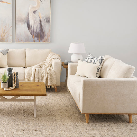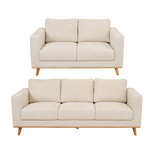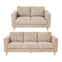 This package consists of 1 x Saba 2 seater sofa and 1 x Saba 3 seater sofa in sand.