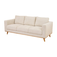 The 100% polyester fabric in sand is soft yet hard-wearing, and the rubberwood legs have a natural finish.