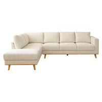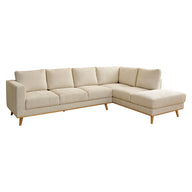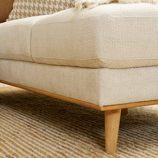 The 100% polyester fabric in sand is soft yet hard-wearing, and the rubberwood legs have a natural finish.