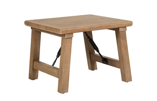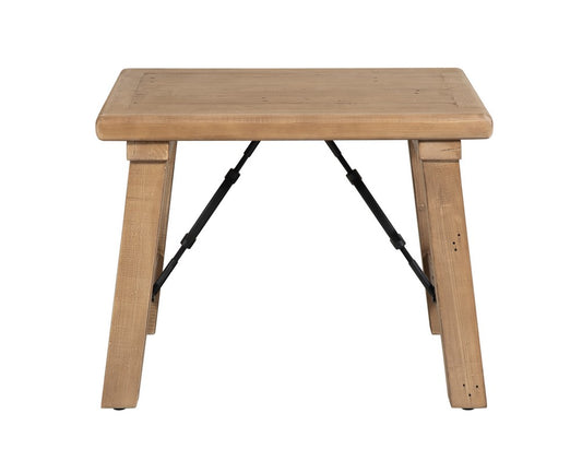 Two black diagonal brace metal bars connect the side table top and frame ensuring stability as well as having an aesthetically pleasing effect.