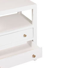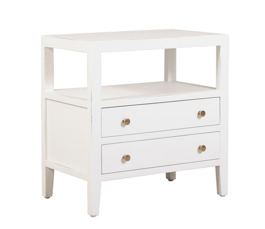 Featuring a sleek, spacious table top, open shelf and two large drawers, it provides ample storage for all your night time essentials.