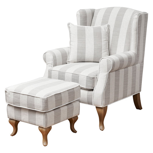 Sophia Wingback Chair & Ottoman with Beige Stripes