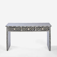 Elevate your interior with this striking black and white bone inlay desk, a handcrafted statement piece that blends traditional artistry with modern functionality. Whether used as a home office desk, console table, or vanity, it brings a luxurious and culturally rich aesthetic to any space.