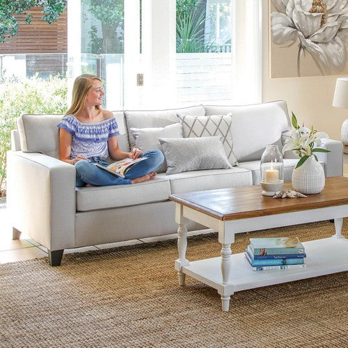 It is a quality Australian-made product with a solid timber frame and Black Cat industrial webbing. Select from 5 different types of feather and/or foam combinations for your seating comfort, and customise with your choice from the entire range of Warwick fabrics, as well as a selection from other leading suppliers. Prices will vary according to the size of the sofa selected as well as the grade of fabric and level of seating comfort.