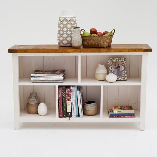 This low bookcase is ideal for a home office, living room or child's bedroom for DVDs, knick-knacks, photo frames, trophies, etc.