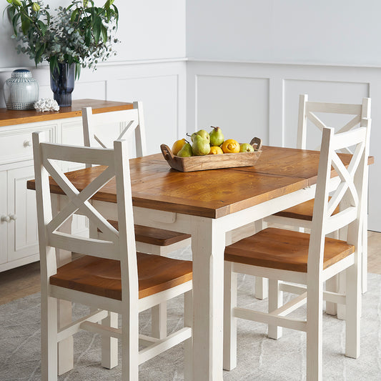 Our extensive, robust and versatile Tuscan collection is made from carefully selected solid, reclaimed pine shipping pallets. The pieces are finished with a honey-coloured stain and our signature ivory wash.