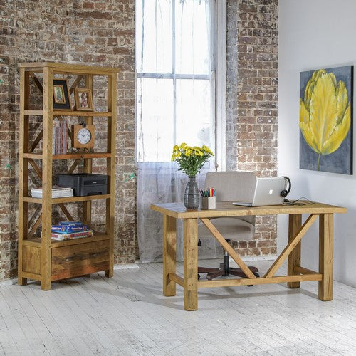 Crafted from reclaimed pine shipping pallets with a rustic tawny stain, the Vintage collection embodies the balance and simplicity of country style furniture. Its weathered finish and visible knots and nail holes evoke the character and patina of old wood.