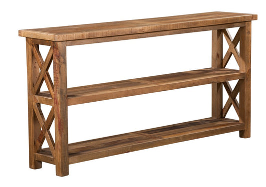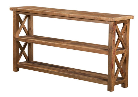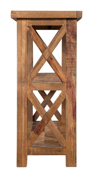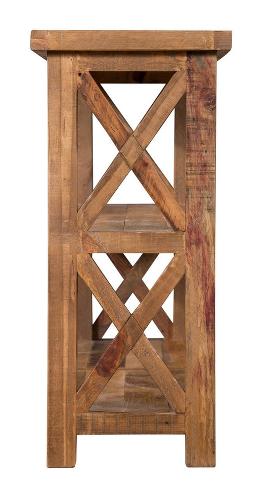 Crafted from reclaimed pine shipping pallets with a rustic tawny stain, the Vintage collection embodies the balance and simplicity of country style furniture. Its weathered finish and visible knots and nail holes evoke the character and patina of old wood.