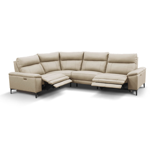 Our Waldorf 4 piece powered leather recliner set is crafted from genuine leather, offering exceptional durability and long-lasting performance. The natural, breathable material features a light surface coating for added protection and a uniform colour for a sleek, stylish look. Soft and comfortable with a modern matte finish, this sofa set is designed to provide both luxury and practicality for everyday living.