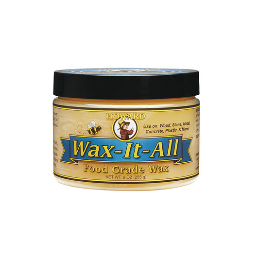Howard Wax-It-All is a food-grade paste wax that is safe for any surface where food contact may occur. This thick, smooth blend of beeswax, carnauba wax, and food grade mineral oil revives faded surfaces and helps protect wood from drying out and cracking. Use Wax-It-All to care for a multitude of surfaces in and around your home.