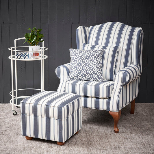This Wing Chair is photographed in Warwick Eastport Marine fabric with enduro foam seating.